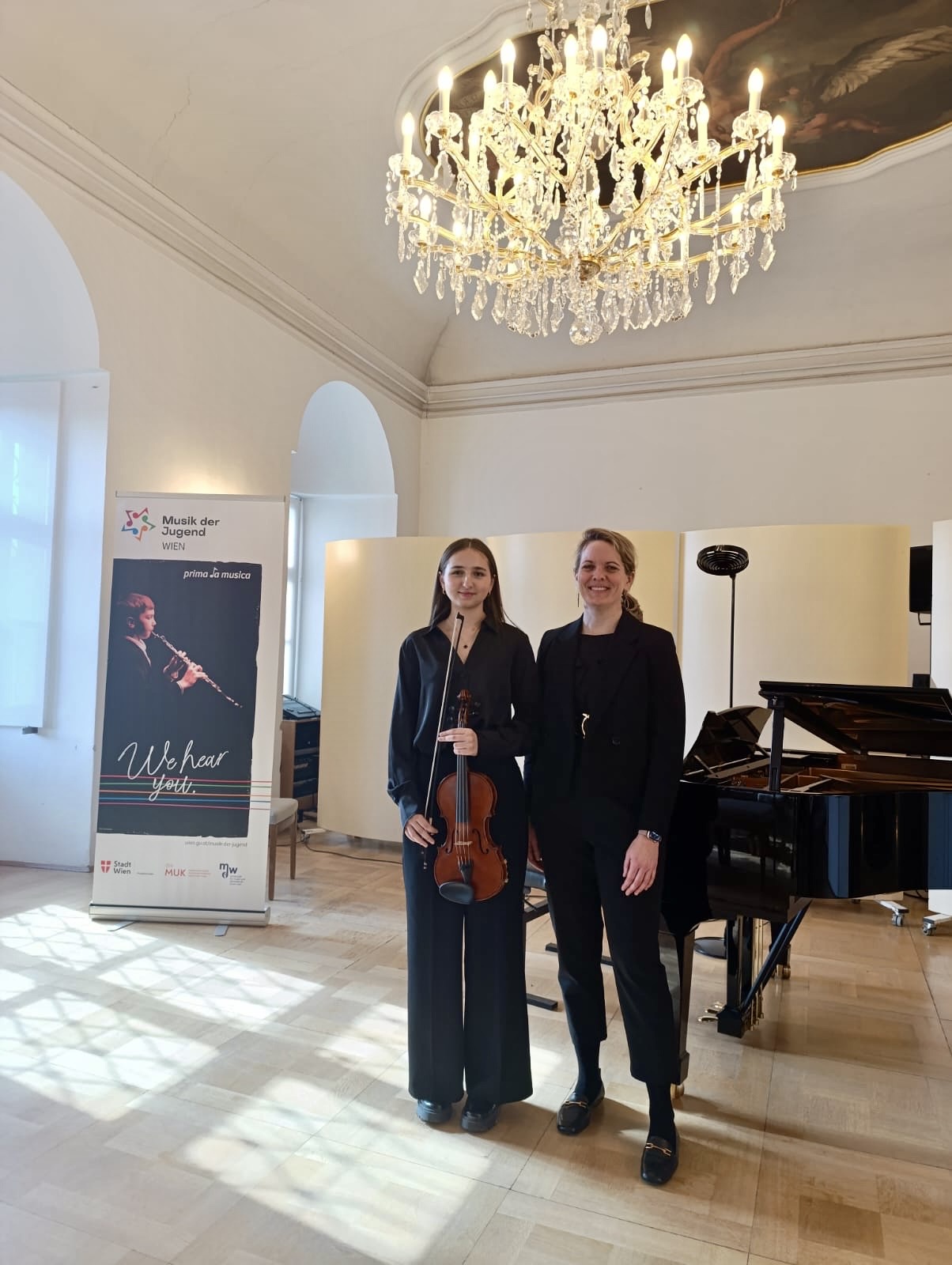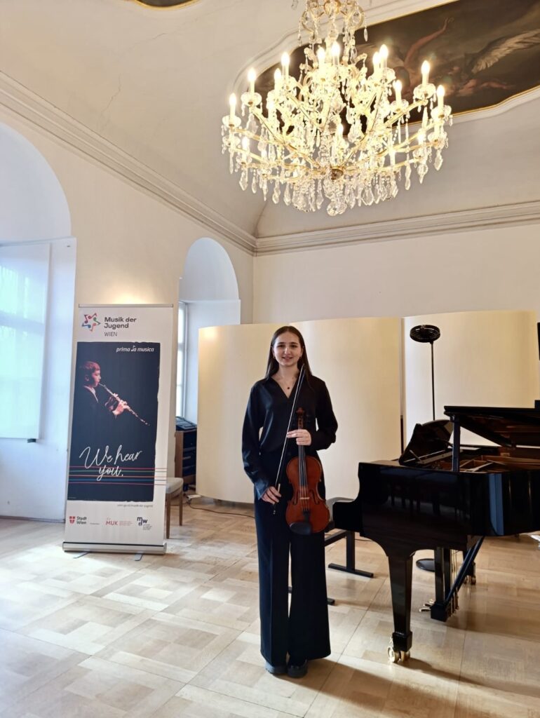 Ema Patakova aus der 6D hat beim Landeswettbewerb prima la musica am 25. Februar 2026 in Wien den 2. Preis in Geige Solo der Alterskategorie III gewonnen. Sie wurde von Prof. Sigrid Kammerer betreut und von Prof. Lindsey Huff am Klavier begleitet. Herzliche Gratulation zu diesem Erfolg!